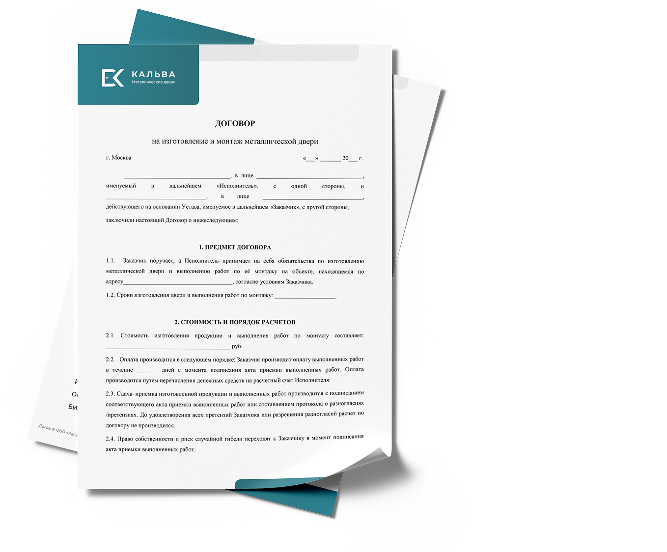 «Двери Кальва» — это собственное производство металлических входных дверей полного цикла. С 2004 года мы изготавливаем и устанавливаем двери в Ногинске и Московской области, обеспечивая высший уровень качества. Мы предлагаем решения для квартир, частных домов, коммерческих объектов и промышленных помещений: от стандартных моделей до эксклюзивных дверей на заказ по вашему проекту.